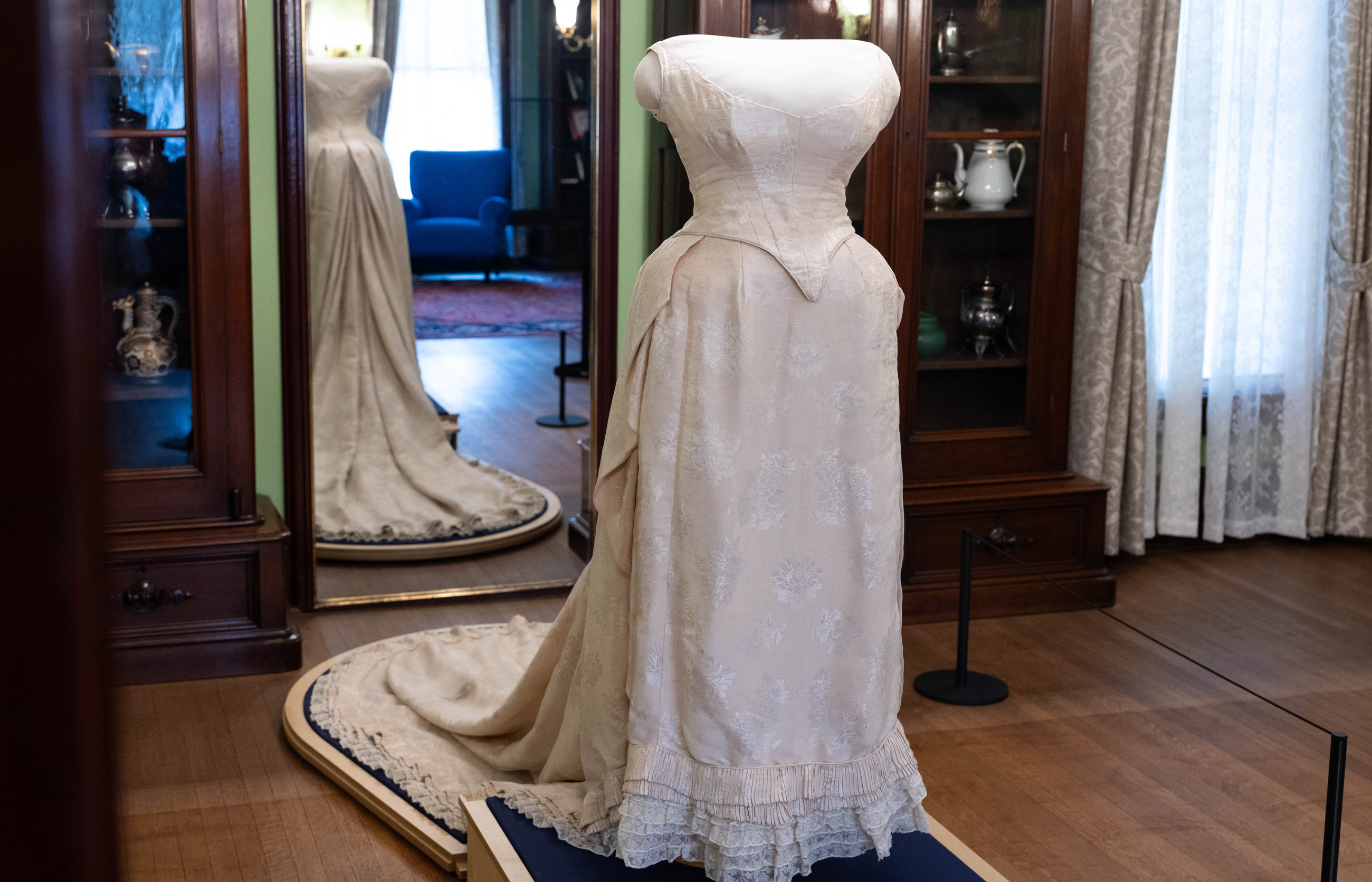 Among the most elaborate wedding gowns of its time in Colorado, the dress reflected the staggering fortune of her husband, mining magnate Horace Tabor. Rich fabrics, intricate detailing, and a commanding silhouette announced arrival—not just into marriage, but into status and spectacle. It was opulence on display.