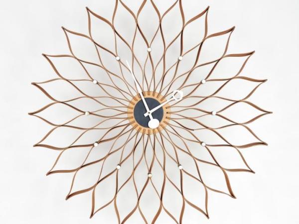 Irving Harper for George Nelson Associates, Sunflower clock, 1958. Lacquered wood, enameled aluminum, and enameled brass. Manufactured by Howard Miller Clock Company. Collection of William and Annette Dorsey. Photograph by John R. Glembin.