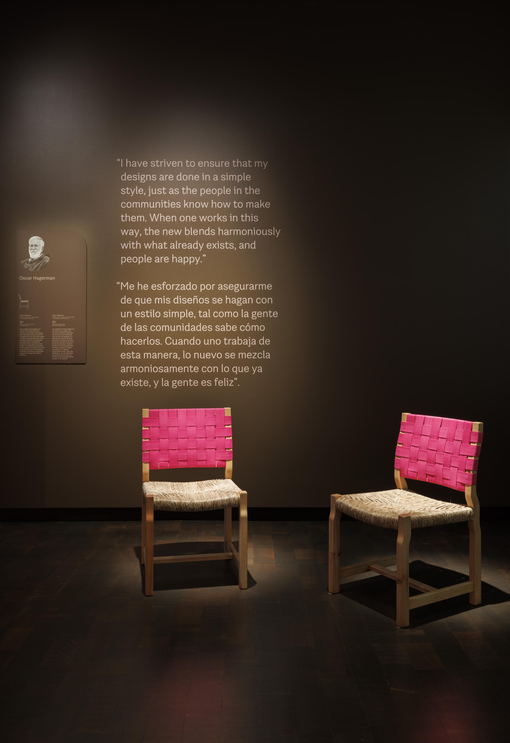 Los diseños de Oscar Hagerman se basan en su respeto por las comunidades artesanales, las técnicas y los materiales con los que ha trabajado a lo largo de sus más de 50 años de carrera. En Maya, incorpora el motivo meandro maya, en la forma de sus patas y explora la relación entre la ergonomía humana y el diseño. Creada a propósito con talleres artesanales locales, esta silla defiende el uso de materiales accesibles, promoviendo un enfoque sostenible del diseño basado en la tradición.
