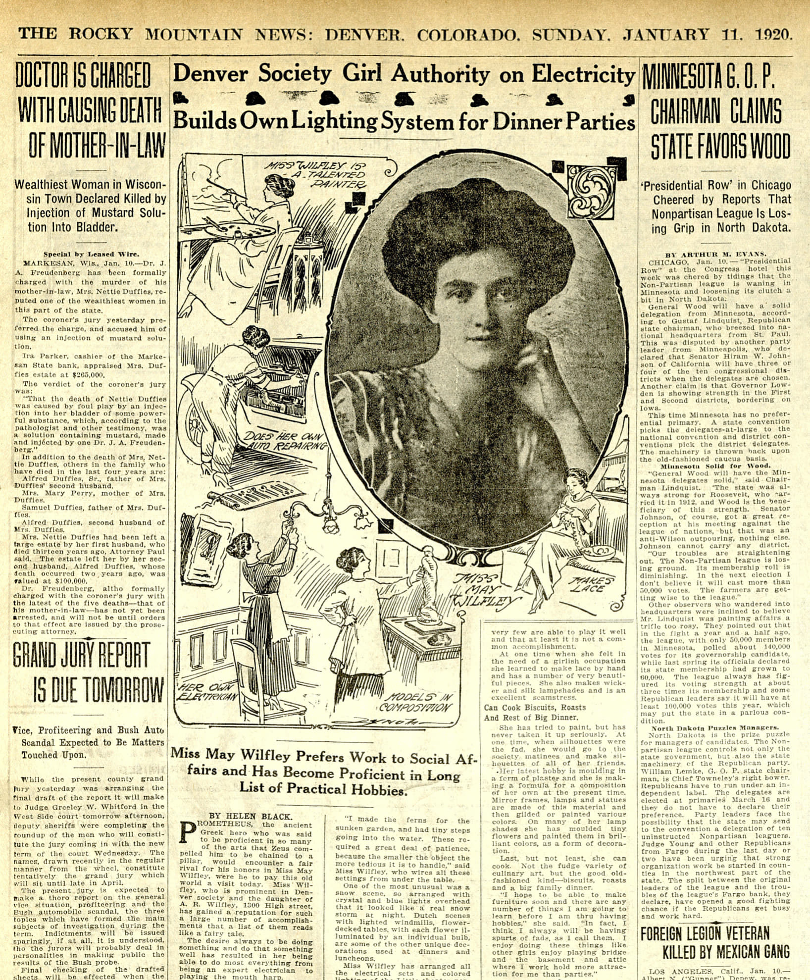 “Miss May Wilfley Prefers Work to Social Affairs and Has Become Proficient in Long List of Practical Hobbies,” The Rocky Mountain News (Daily), January 11, 1920.