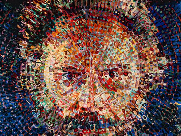 Chuck Close, Lucas/Rug, 1993. Silk and linen; 80 x 66-3/4 in. Denver Art Museum; Funds from 1994 Alliance for Contemporary Art Auction, © the artist.