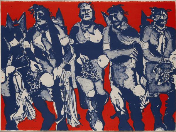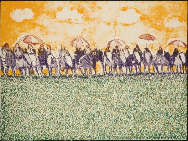 Fritz Scholder, Indians with Umbrellas, 1971. Lithograph: 22 × 30 in. Denver Art Museum: Purchased with Modern & Contemporary Department acquisition funds, 1973.53.7. © Estate of Fritz Scholder.